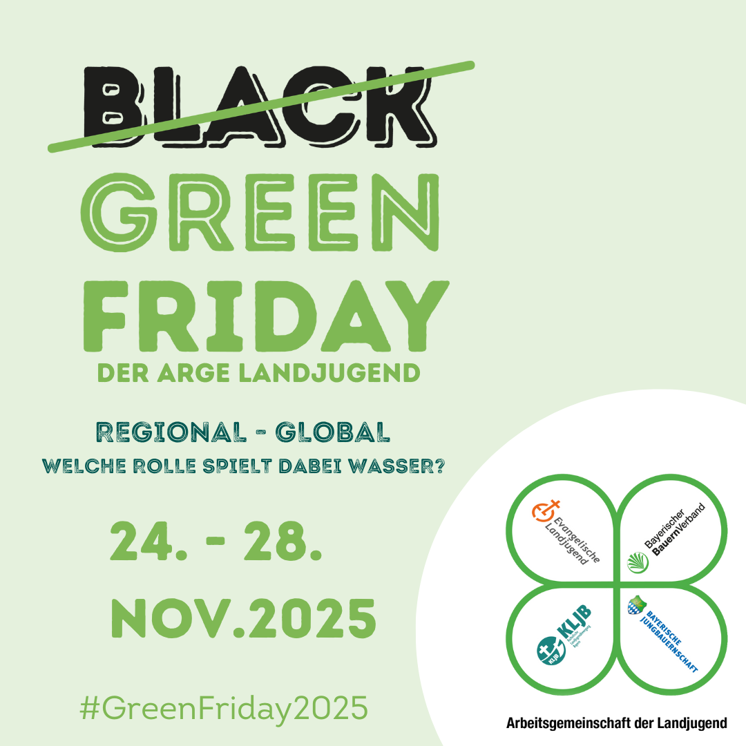 Wir laden alle ein, sich zwischen dem 24. und 28. November 2025 aktiv am Green Friday zu beteiligen. Teile deine eigenen Tipps rund um das Thema Wasser, im Alltag, auf dem Hof oder beim Einkauf – gerne auch in Form eines Videos! Nutze dazu unseren Hashtag #GreenFriday2025 und verlinke uns auf Social Media mit den folgenden Handles: