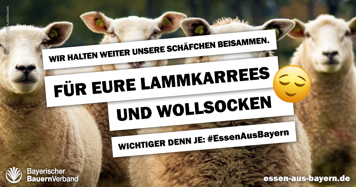 Wichtiger denn je: #Essen aus Bayern - Motiv Lammkarrees/Wollsocken (Facebook)