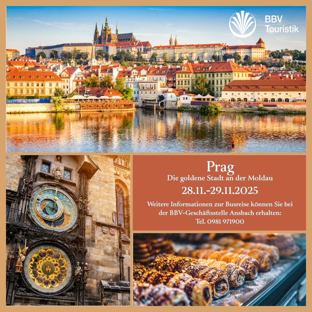 Auf Anregung der BBV Landfrauengruppe im Kreisverband Ansbach, veranstaltet die BBV Touristik GmbH vom 28.11. - 29.11.2025 eine Zweitagesfahrt zum Weihnachtsmarkt nach Prag mit Stadtführung.