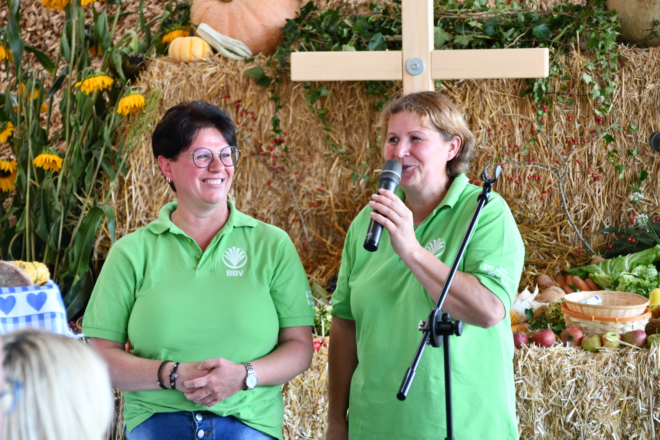Der ökumenische Erntedankgottesdienst eröffnete am Vormittag traditionell den Tag der Landwirtschaft. In diesem Jahr mit dem neuen evangelischen Pfarrer Daniel Lunk und der Pastoralreferentin Katharina Lurz von der katholischen Pfarrei Herz Jesu. Nach der Begrüßung am frühen Nachmittag durch Kreisobmann Karl Lappe und die Vorsitzenden Tanja Strobl und Katrin Lang folgten kurze Grußworte vom Landtagsabgeordneten Franc Dierl, von Landrat Florian Wiedemann und der zweiten Bürgermeisterin Sandra Huber.