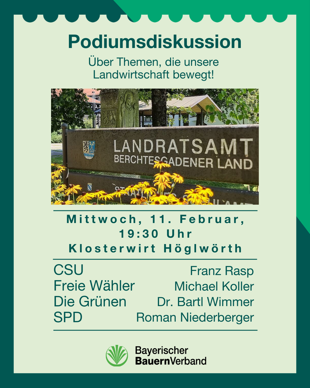 Aufgrund der Kommunalwahlen im März 2026 laden wir alle Interessierten zur Vorstellung der Landratskandidaten sowie zum persönlichen Kennenlernen zur Podiumsdiskussion am