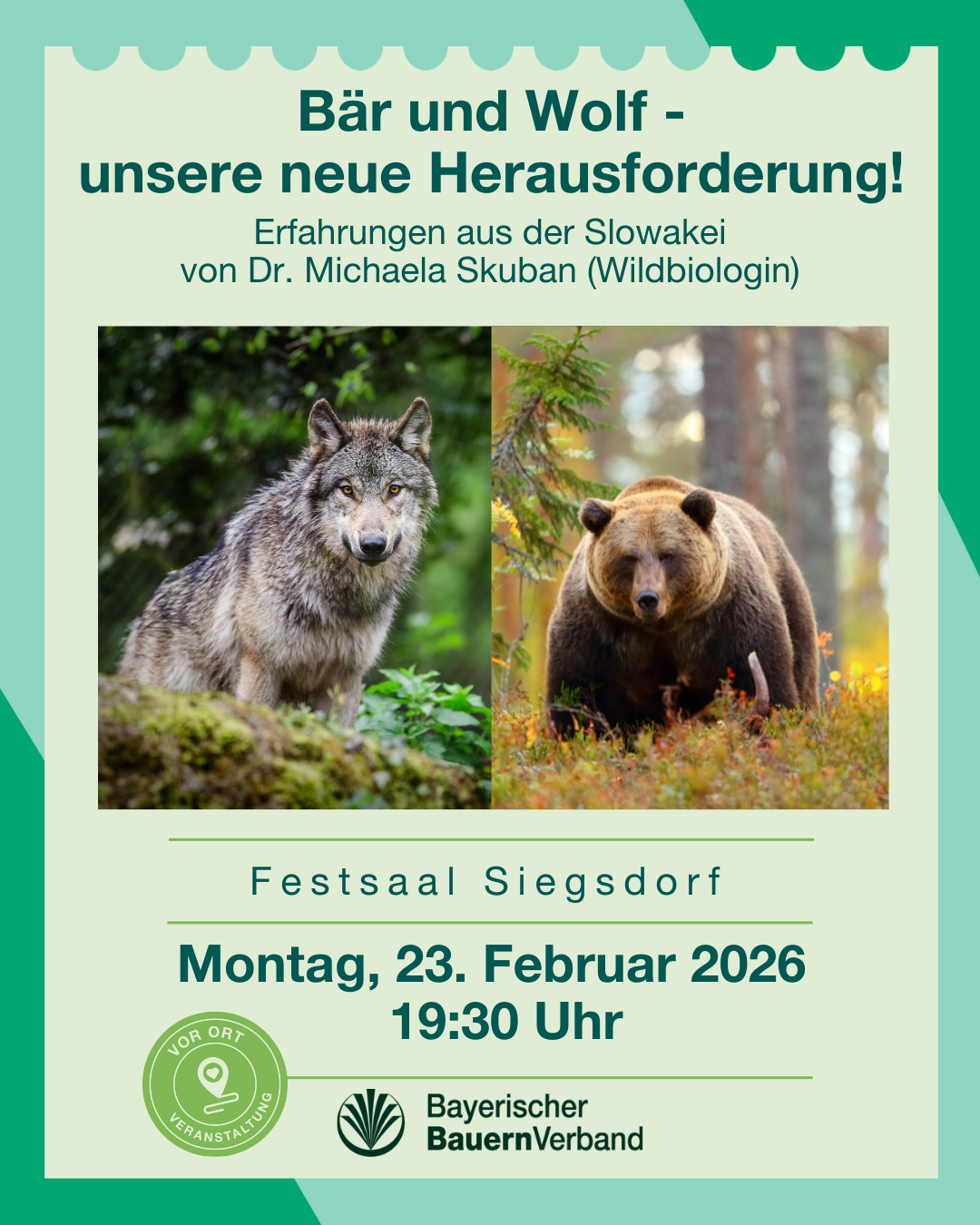 Einladung zur Vortrags- und Informationsveranstaltung Bär und Wolf