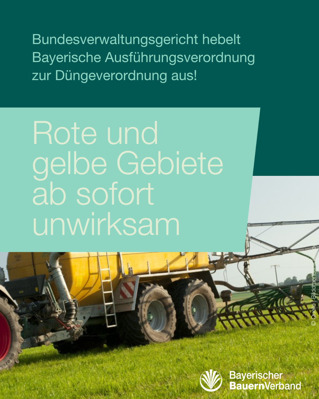 28.10.2025 | Der jahrelange Einsatz des Bayerischen Bauernverbandes und aller beteiligten Landwirte sowie Interessensgemeinschaften führte nunmehr zum Erfolg und zum entscheidenden Urteil des BVerwG, welches die Bayerische Ausführungsverordnung zur Düngeverordnung aufhebt.