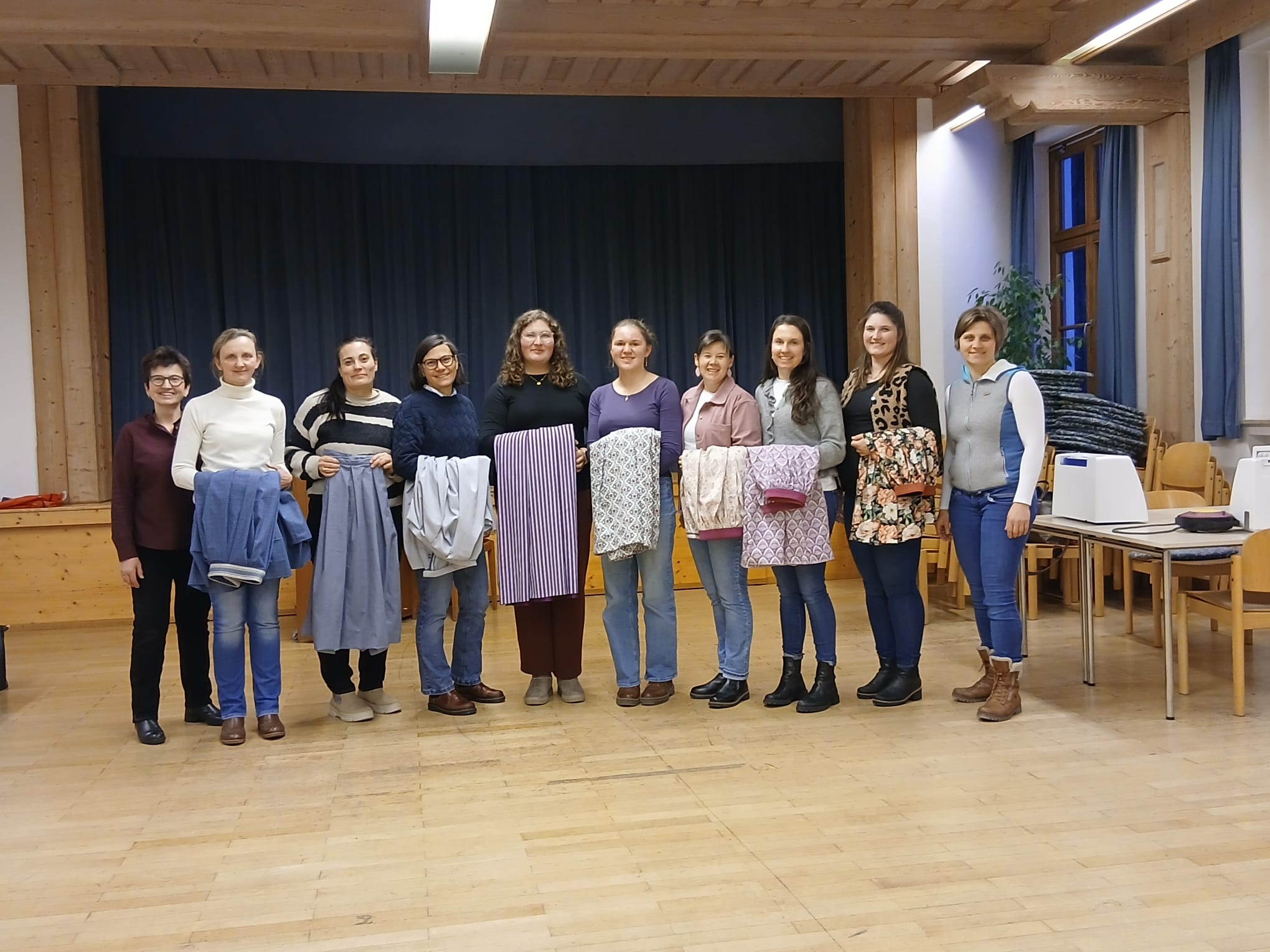 Am Samstag, dem 10. Januar kamen im Pfarrsaal Mittenwald 8 junge Damen zusammen, um unter der fachkundigen Anleitung von Angelika Hutter zwischen 8.30 Uhr und 16.00 Uhr mit der eigenen Nähmaschine einen Rock nach vorheriger Modell- und Stoffauswahl zu nähen.
