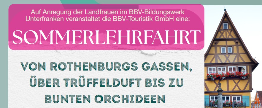Auf Anregung der Landfrauen im Bayerischen Bauernverbandes, Kreisverband Kitzingen, veranstaltet die BBV-Touristik GmbH in diesem Jahr die eintägige Lehrfahrt unter dem Motto: