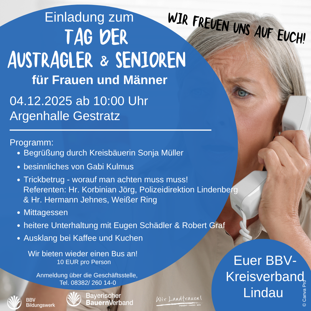 Anmeldung über die Geschäftsstelle, Tel. 08382/ 260 14-0, lindau@bayerischerbauernverband.de.