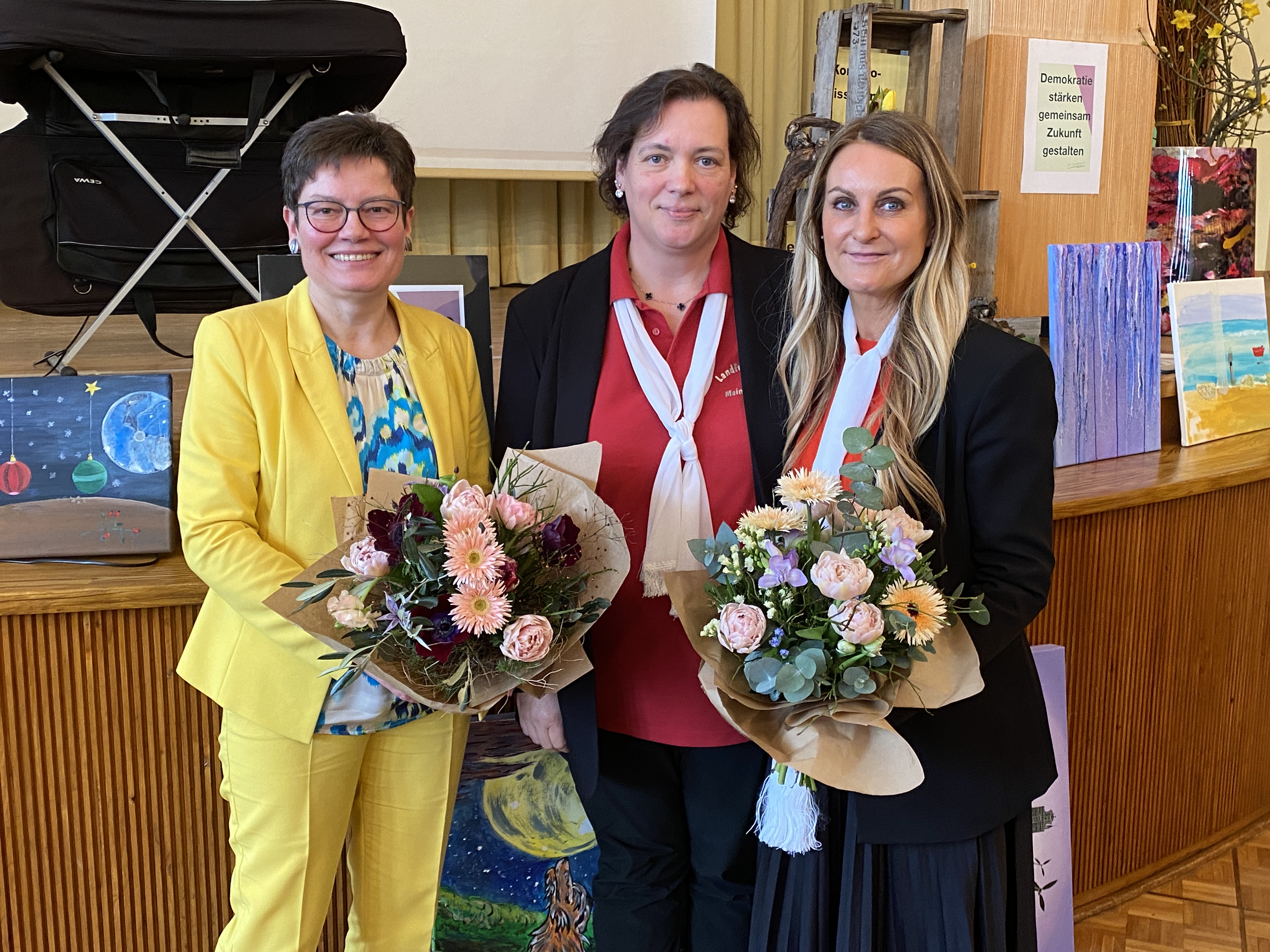 Mit etwa 145 Landfrauen war das Kreuzkloster in Gemünden bis auf den letzten Platz gefüllt und mit zahlreichen Ehrengästen, wie Alexander Hoffmann (CSU), Kerstin Celina (Grüne), die stellv. Landrätin Pamela Nembach und weiteren dicht besetzt. Das angebotene Frühstück mit einer breiten Palette von Zutaten aus der Region ließ keine Wünsche offen. Zuletzt konnten die Teilnehmerinnen sogar den Daheimgebliebenen noch Joghurts und Buttermilch mit verschiedenen Geschmacksrichtungen mitbringen.