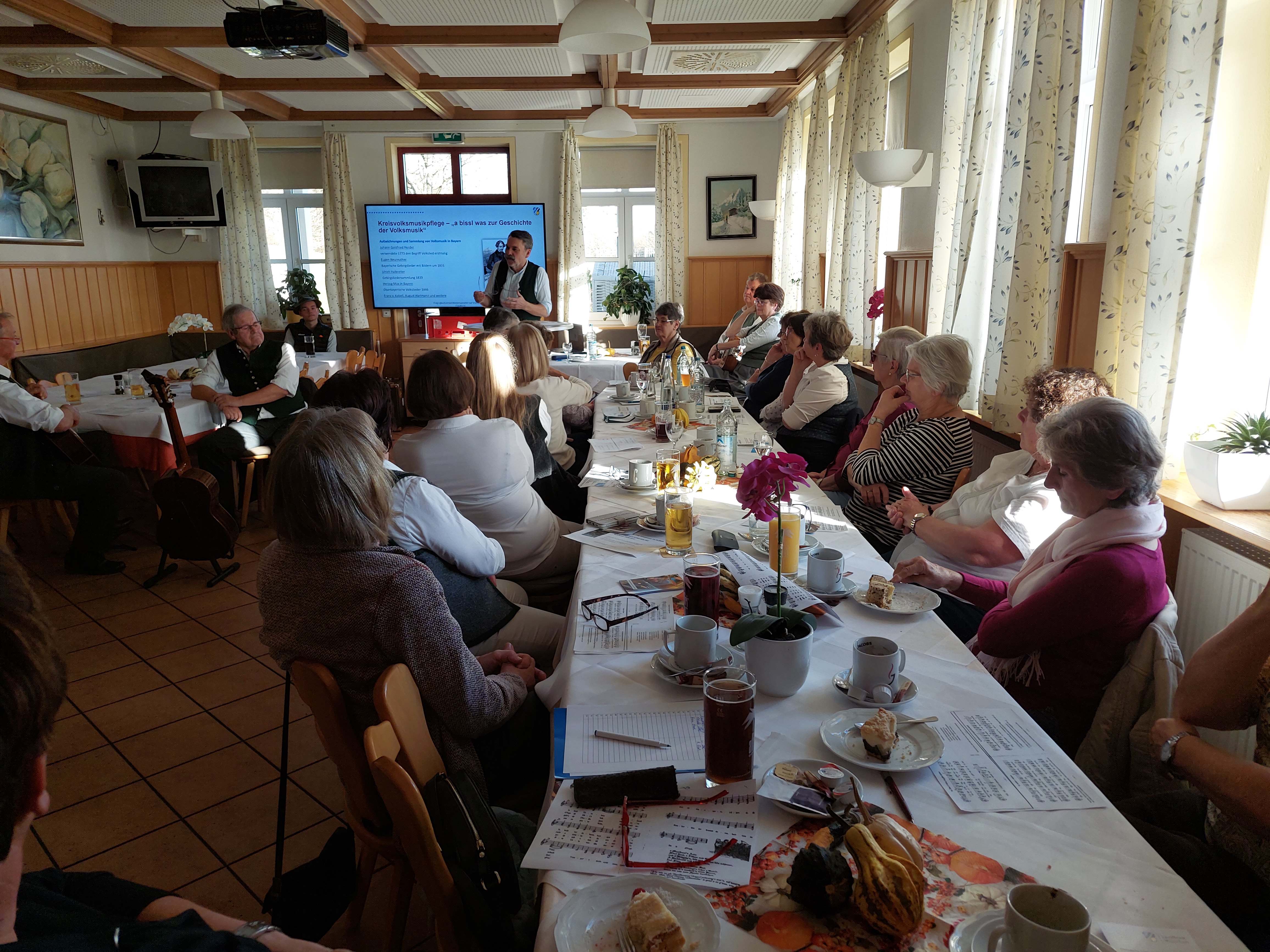 Kreisvolksmusikpfleger Hubert Zellner beleuchtete die historische Entwicklung der Volksmusik und diskutierte die aktuellen Herausforderungen des Genres. Das Referat „Volksmusik im Wandel der Zeit“ wurde durch eine musikalische Umrahmung ergänzt und bot den Teilnehmenden die Möglichkeit zum Mitmachen. Wie angekündigt, war eine klangbeispielereiche Darbietung zu hören – denn Musik ohne Klangbeispiele ist wie das fehlende Salz in der Suppe.