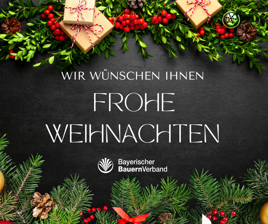 16.12.2025 | Der Bayerische Bauernverband wünscht Ihnen ein gesegnetes Weihnachtsfest, erholsame Feiertage und einen guten Start in das neue Jahr. Vielen Dank für die vertrauensvolle Zusammenarbeit und Ihr Engagement für unsere Landwirtschaft.