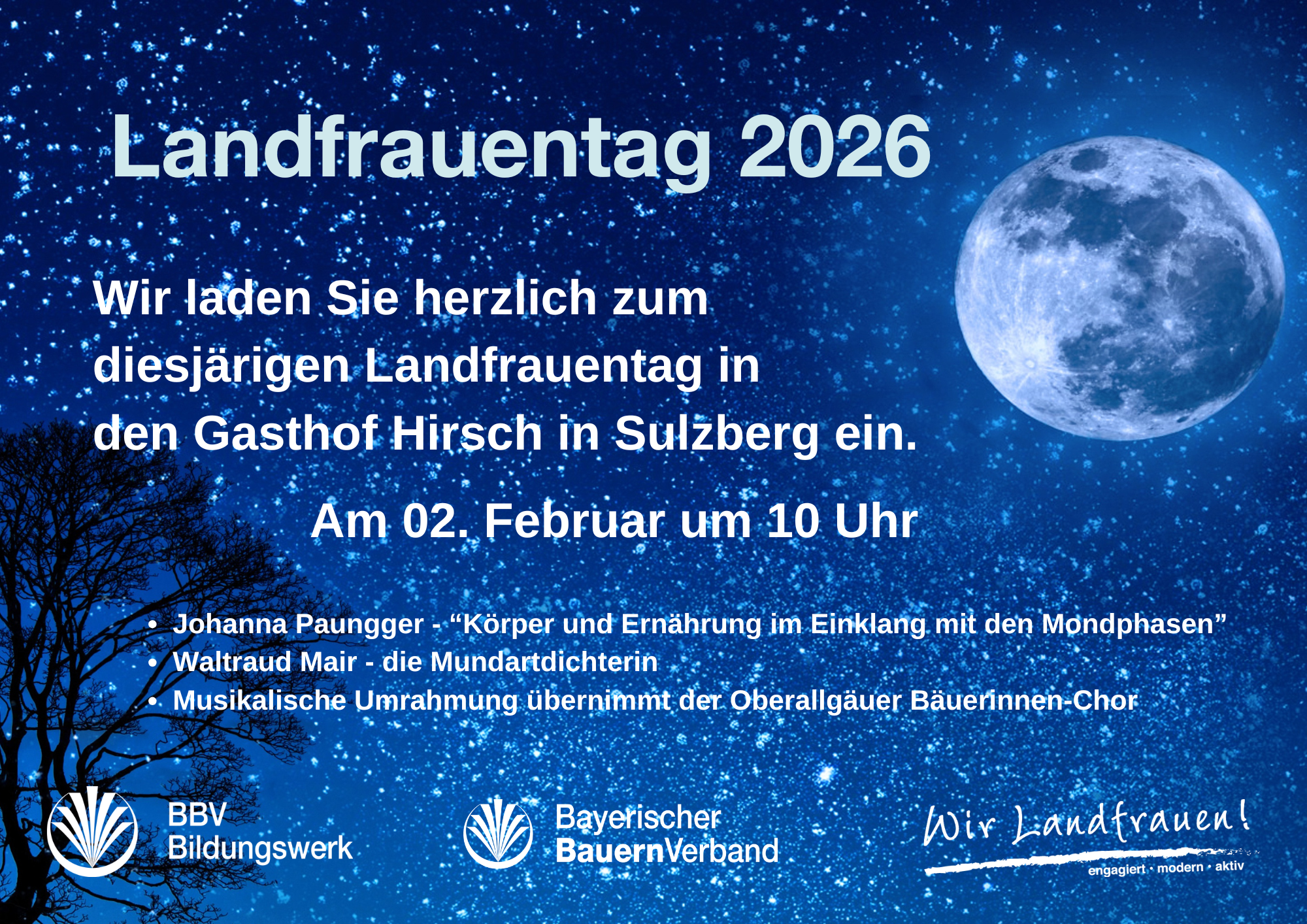 Am Montag, den 02. Februar 2026 um 10:00 Uhr findet der alljährliche Landfrauentag der BBV-Landfrauengruppe Oberallgäu