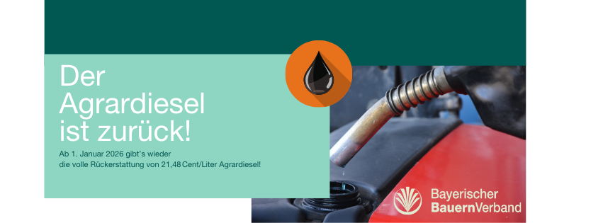Ab 2026 wieder volle Rückvergütung von 21,48 Cent pro Liter – Bayerns Landwirte profitieren mit rund 80 bis 90 Millionen Euro