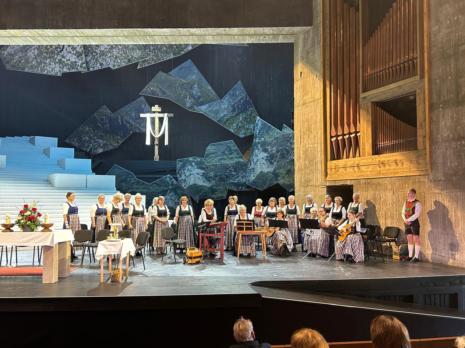 Einen feierlichen Auftakt erlebten die Besucherinnen und Besucher des Passionsspiels am Sonntagmorgen in Erl: Der Landfrauenchor gestaltete die Messe musikalisch und trug damit zur würdevollen Gestaltung des Gottesdienstes im Festspielhaus bei.
