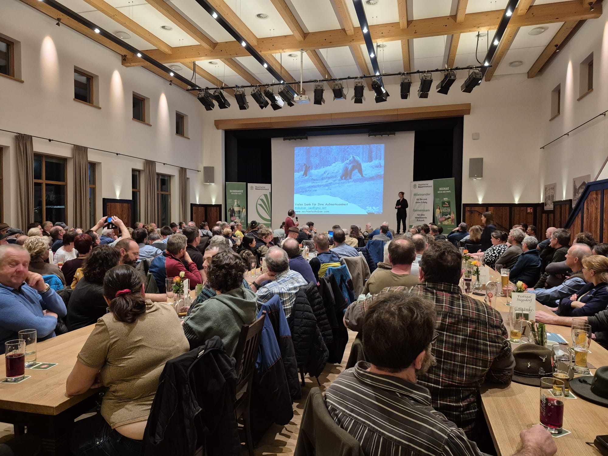 In ihrem eindrucksvollen Vortrag für Landwirte, Ehrengäste und alle Interessierten zeigte Frau Dr. Skuban, wie wichtig Wissen, Respekt und ein offener Dialog sind, wenn es um große Beutegreifer wie Wolf und Bär geht.