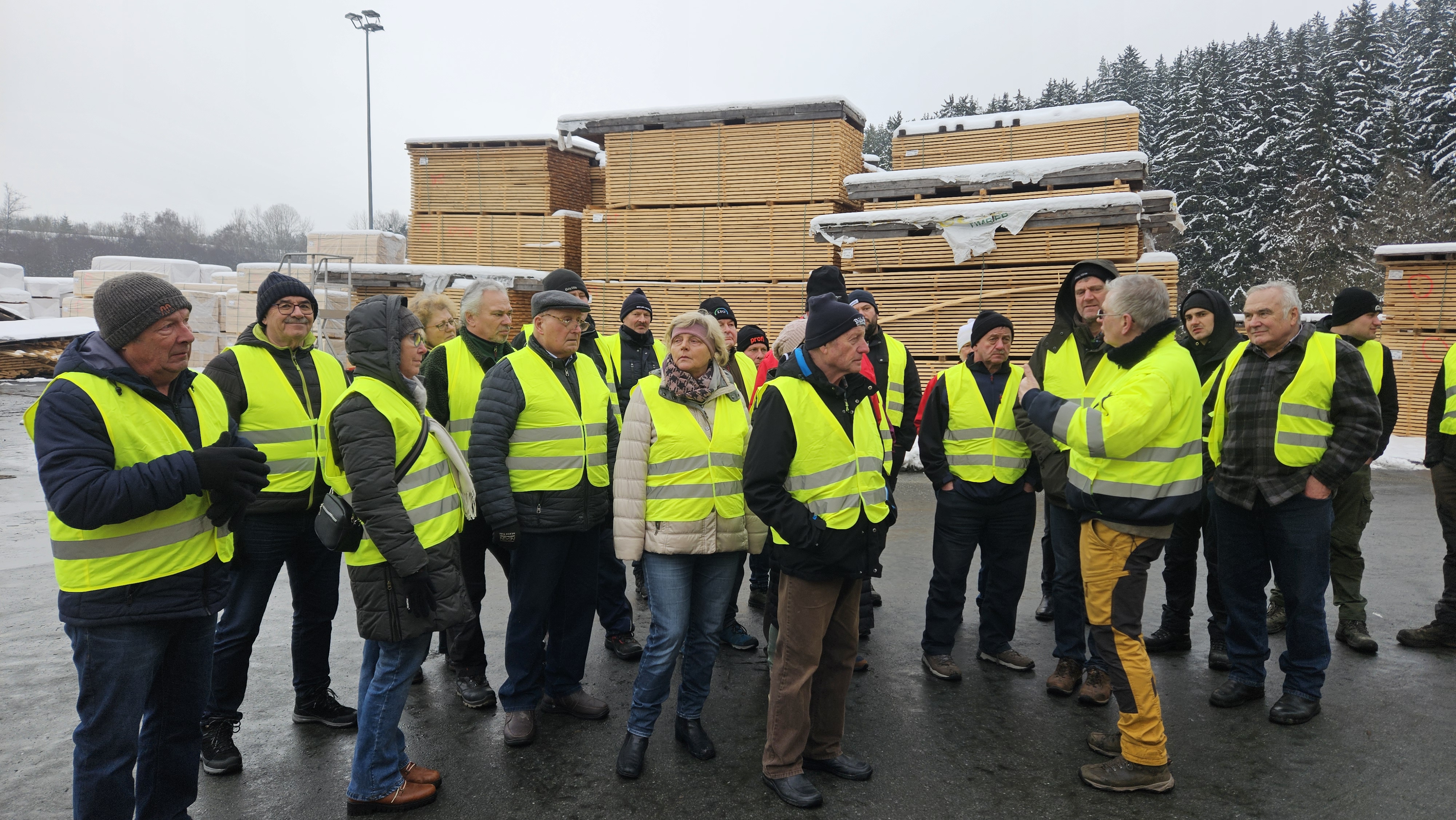 Die Besuchergruppe wurde von Herrn Steffen Rutert herzlich empfangen und durch den Betrieb geführt. Dabei erhielten die Teilnehmer ausführliche und interessante Informationen über die einzelnen Produktionsschritte – von der Rohholzannahme über die Verarbeitung bis hin zur Weitervermarktung der Produkte. Besonderes Augenmerk lag auf den Themen Nachhaltigkeit, regionale Wertschöpfung und effizienter Ressourceneinsatz.