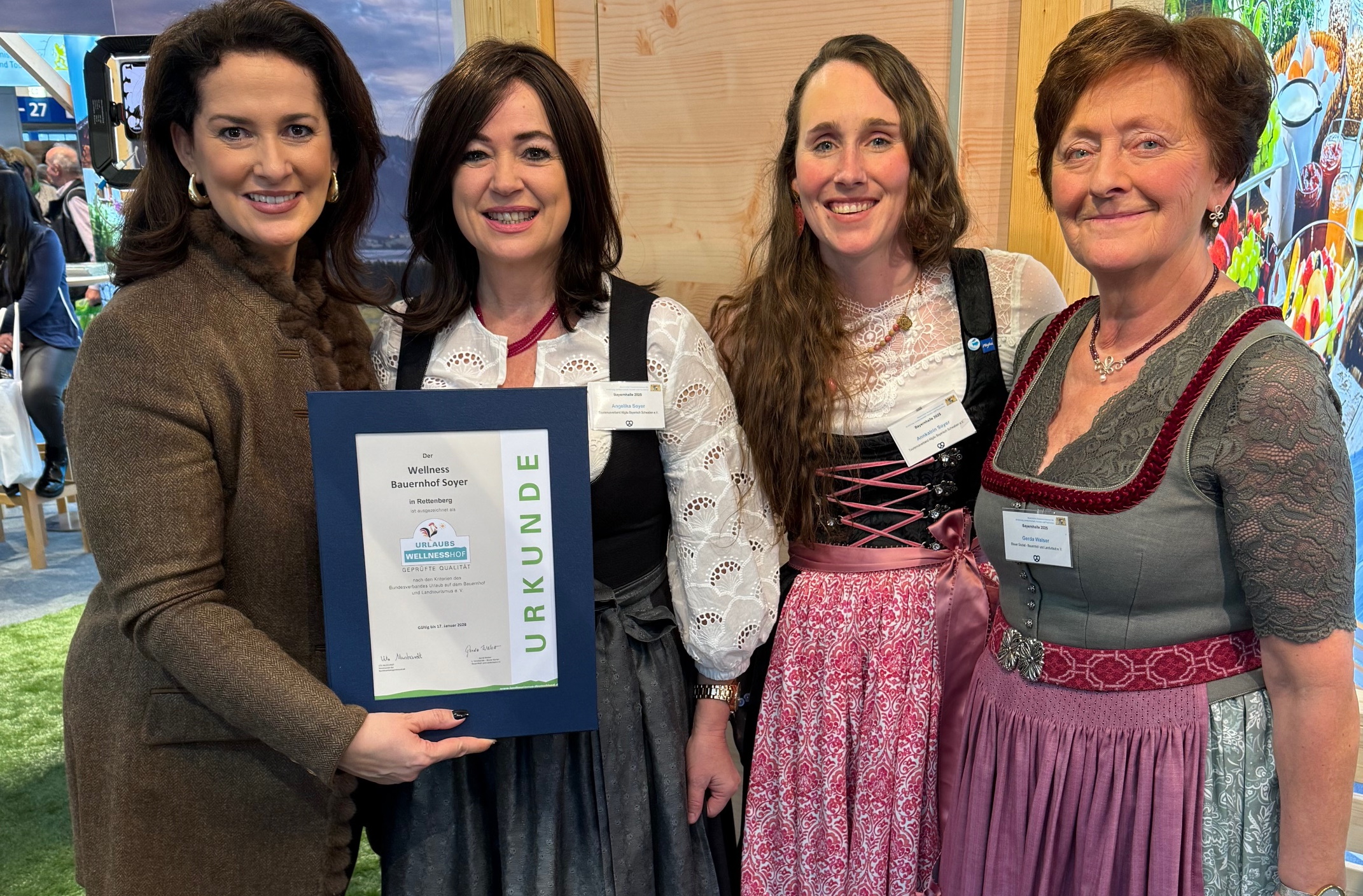 „Ich bin wahnsinnig stolz, dass mit dem Wellnesshof Soyer, der erste ausgezeichnete ‚UrlaubsWellnesshof‘ in Bayern steht. Urlaub auf dem Bauernhof ist nachhaltig, zukunftsweisend und liegt so stark im Trend wie nie zuvor. Es ist ein moderner Sehnsuchtsort, wo die Gäste das Laute, Schnelle, Gehetzte für ein paar Stunden und Tage hinter sich lassen. Sie können genau dort ankommen, wo Nachhaltigkeit und Entschleunigung erlebbar werden. Bauernhof-Urlaub bietet für alle eine Auszeit vom Alltag“, betont die Bayerische Landwirtschafts- und Tourismusministerin Michaela Kaniber.