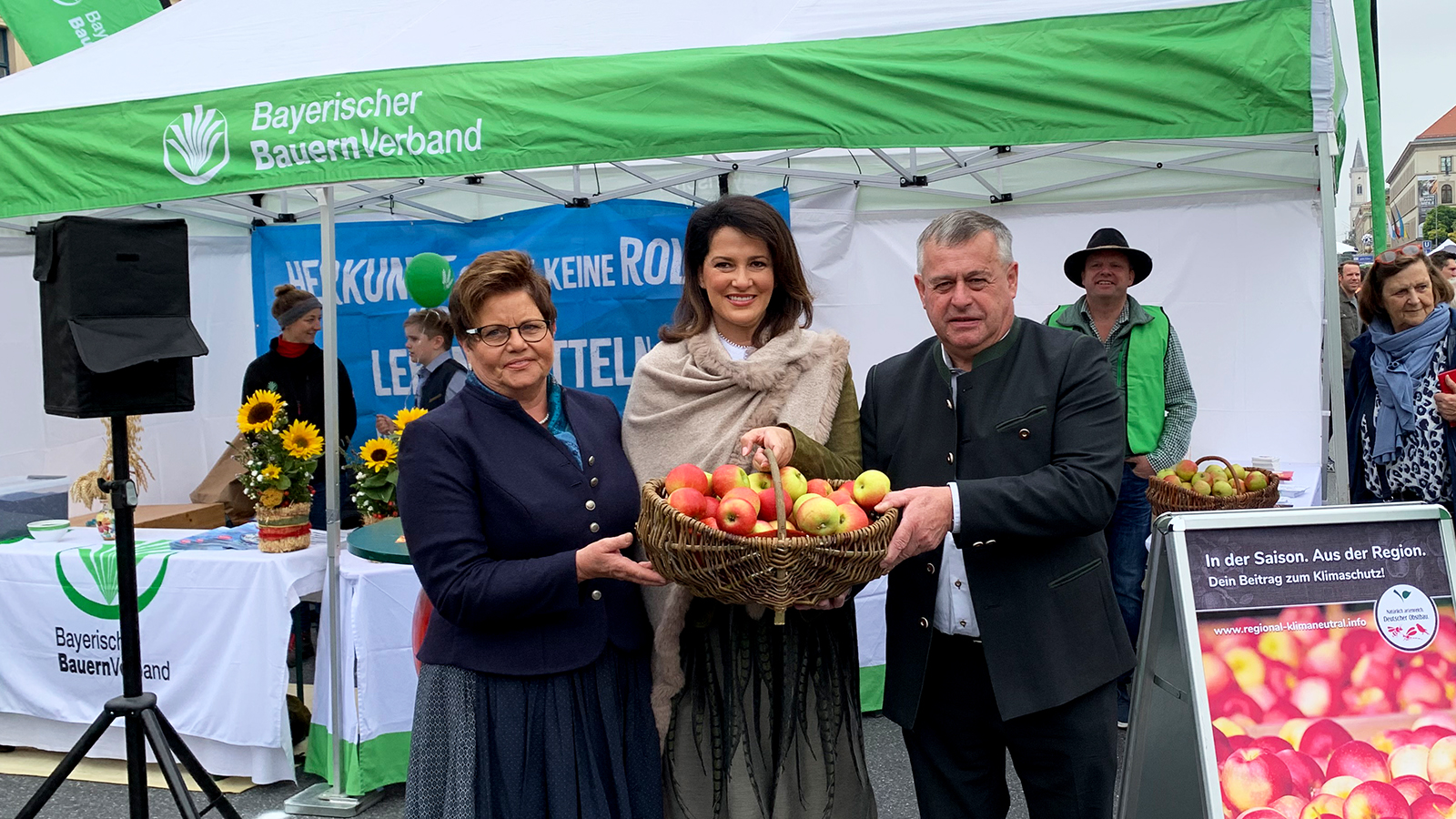 Doch es ging um mehr als ums Einkaufen. Auch der Austausch mit den Direktvermarktern Bauernmarktmeile kam gut an. Im Bereich vor der Feldherrenhalle waren zahlreiche Infostände aufgebaut. So konnten sich die Gäste beispielsweise am Pavillon des Bayerischen Bauernverbands über die heimische Landwirtschaft informieren. Vor Ort dabei waren auch Obstbauern, die Äpfel zur Verkostung anboten.