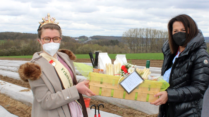 2021-04-12_Spargelaisoneroeffnung.jpgHier können Sie das Bild der Spargelkönigin Christiane Reinhart herunterladen (Bildnachweis Spargel Erzeugerverband Franken)