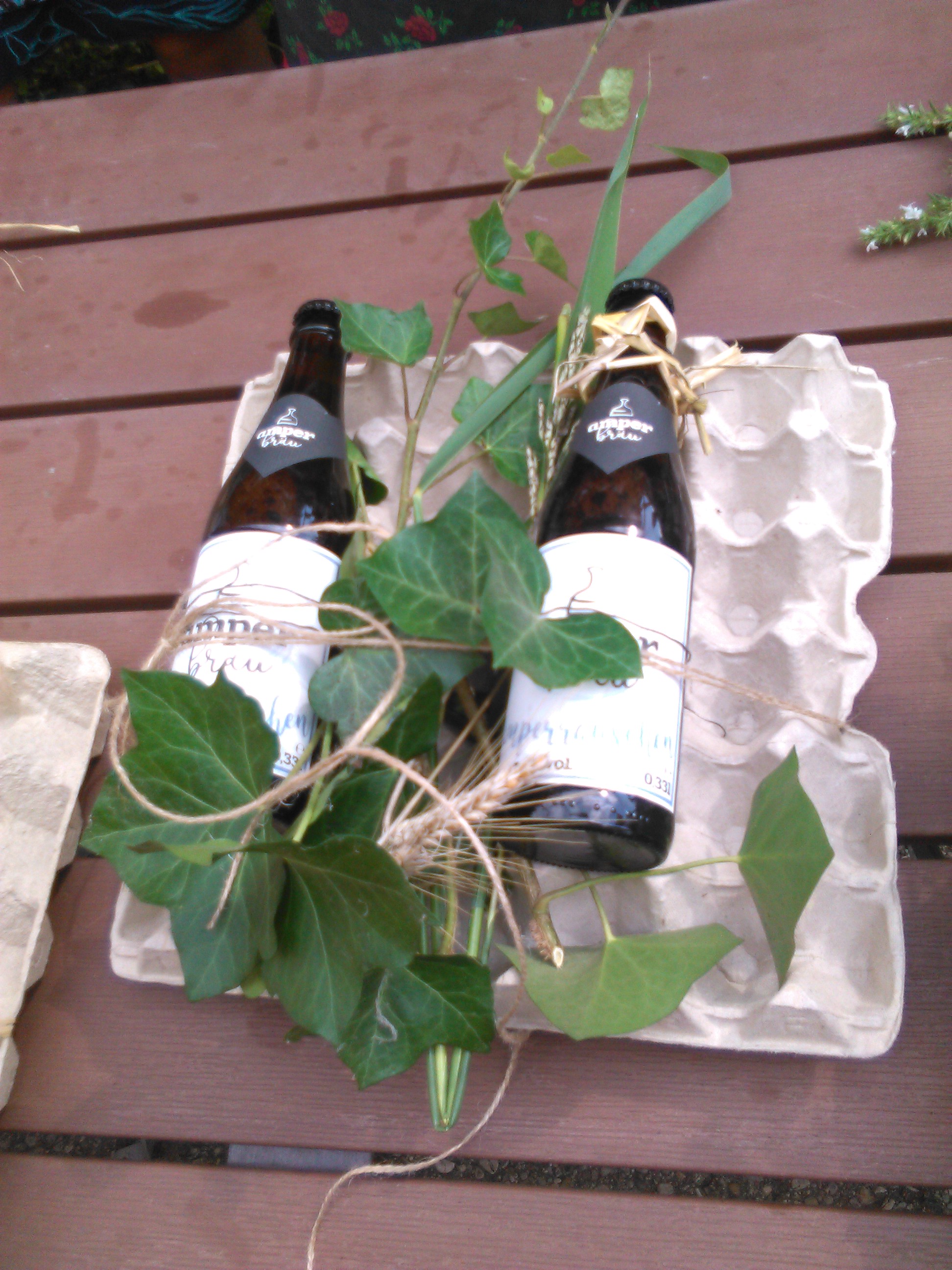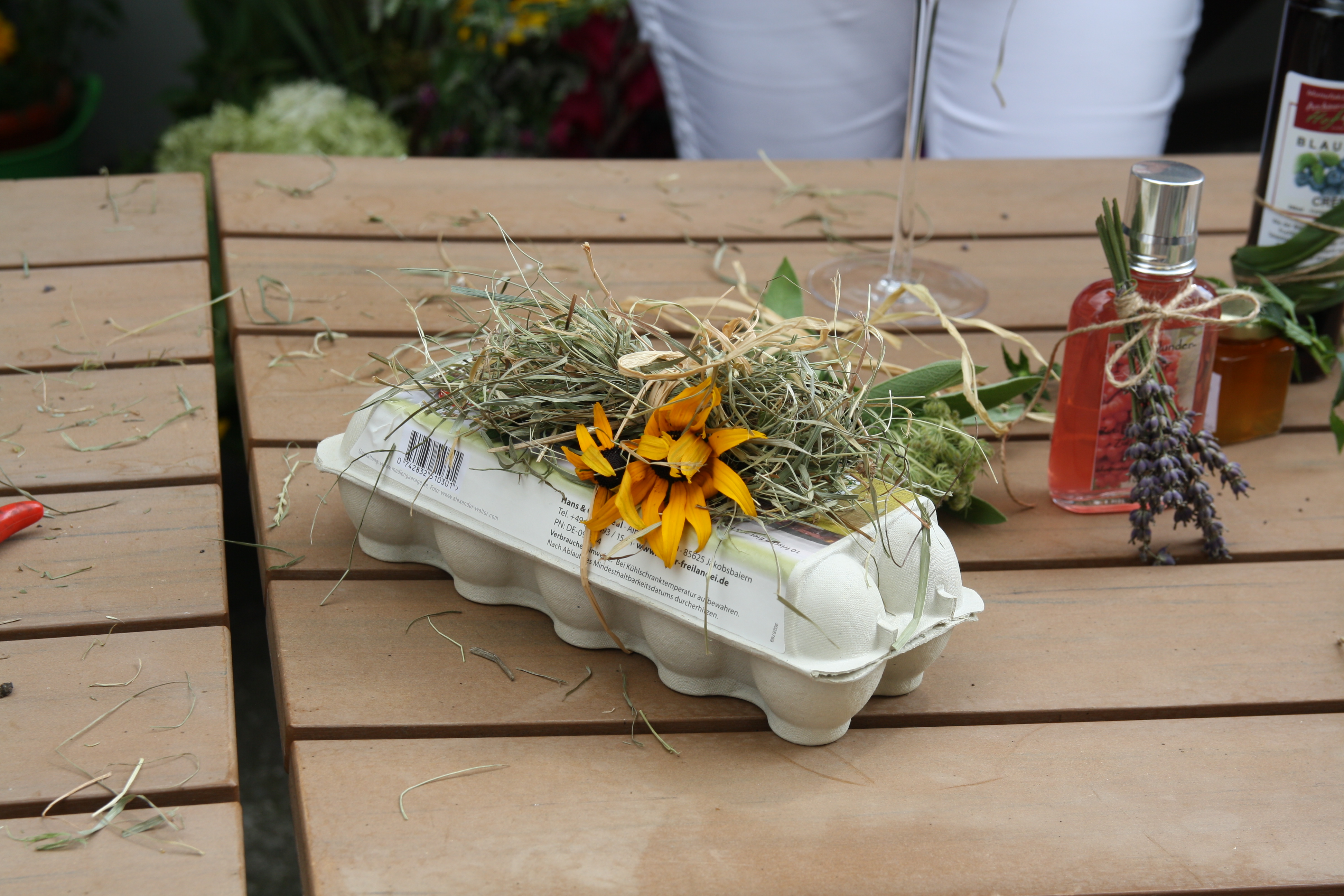 - Und es muss auch nicht immer eine Verpackung sein. Oft tut es auch eine dekorative Schleife aus Naturbast oder Bindfaden mit eingebundenen Blumen oder Zweigen. Floristin Doris Mayr gab beim Kreativtag des Internetportals „Qualität vom Hof“ Anregungen, wie Flaschen mit kleinen gewundenen Kränzchen aus Ackerwinde, wildem Wein und Efeu dekoriert werden können oder wie aus Eierschachteln schöne Geschenkverpackungen werden.