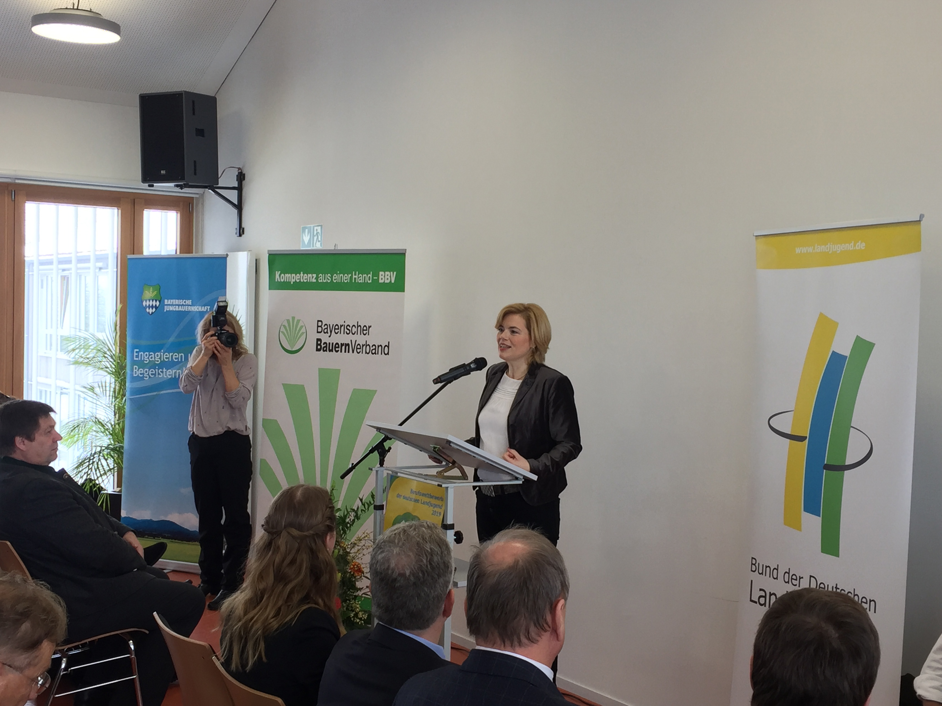 Die Ministerin hatte es sich nicht nehmen lassen, sich im Grünen Zentrum Puch persönlich von der Qualität des Berufswettbewerbes zu überzeugen und mit Teilnehmern ins Gespräch zu kommen. Diese jungen Menschen seien „vor allem Botschafter eines realistischen Bilds von Landwirtschaft. Einer Branche, in der in Sachen Modernität und Innovation die Post abgeht, die beispielhaft ist, wenn es um die Anwendung digitaler Lösungen geht. Lösungen, die abseits einer besseren Wettbewerbsfähigkeit und schonenderen Ressourcennutzung auch dazu beitragen, den Alltag des Landwirtes zu erleichtern“, so Julia Klöckner in Fürstenfeldbruck.