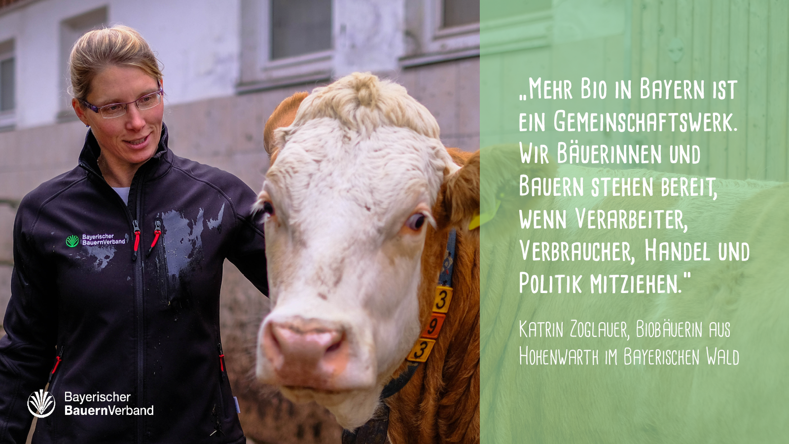 Die Ökolandwirtschaft steht mehr denn je im Zentrum von Debatten der Bürger und der Politik. Das Thema bewegt die Gemüter – das Ziel „30 Prozent mehr Öko bis 2030“ ist inzwischen im Bayerischen Naturschutzgesetz verankert. Damit dies zur Zufriedenheit aller gelingt, sieht der Bayerische Bauernverband viele Akteure in der Verantwortung. „Mehr Bio in Bayern ist ein Gemeinschaftswerk. Wir Bäuerinnen und Bauern stehen bereit, wenn Verarbeiter, Verbraucher, Handel und Politik mitziehen“, sagt Katrin Zoglauer, Biobäuerin aus Hohenwarth im Bayerischen Wald und Mitglied im BBV-Ökoausschuss. Es komme darauf an, den Absatz von Bio aus Bayern zu steigern. Ansatzpunkte dafür sieht der BBV unter anderem in der Gemeinschaftsverpflegung in bayerischen Kitas, Schulen, Kantinen oder Altenheimen sowie in der Gastronomie. Wenn Verbraucher beim Einkaufen bevorzugt zu Produkten mit dem Bayerischen Bio-Siegel greifen würden, stärke dies die Erzeuger, da ihre Produkte wie Milch, Getreide oder Eier weniger austauschbar durch Ware aus anderen Ländern oder Bundesländern würden.