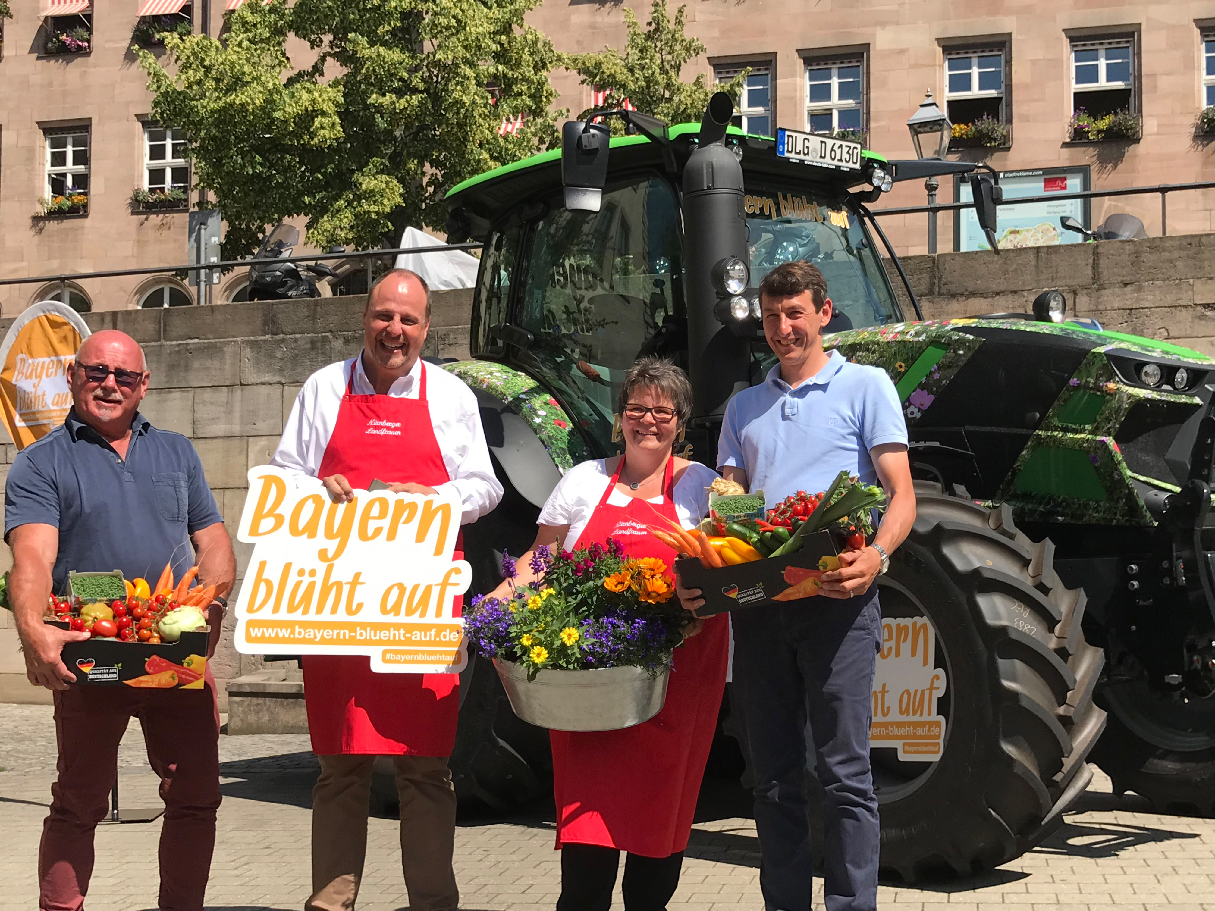 „Keine Branche ist so sehr auf Bienen und andere Bestäuber angewiesen wie die Landwirtschaft“, betont Nürnbergs Kreisobmann Peter Höfler. „Wir wollen im Bereich der Artenvielfalt Teil der Lösung sein, denn bereits jetzt leisten die Bauern hier sehr viel.“ Die bayernweite Schleppertour „Bayern blüht auf“ macht auch auf der Bauernmarktmeile in Nürnberg Station, bevor es in andere Regierungsbezirke weitergeht. Die Landfrauen und der BBV machen mit dieser Aktion im Sommer 2019 auf das Engagement der Landwirtschaft für die Artenvielfalt aufmerksam.