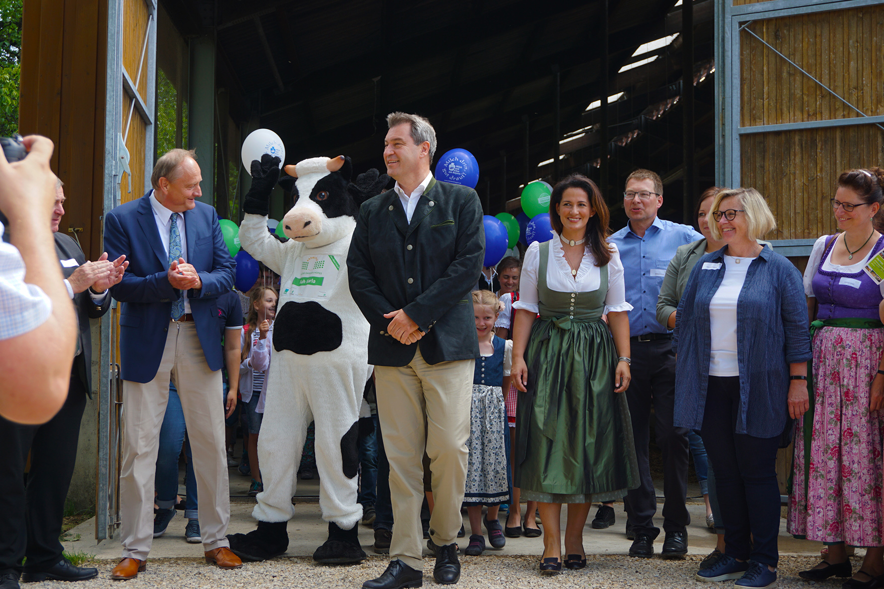 Auf dem Ziegelhof und dem Häringhof haben Söder und Rukwied die Tore gemeinsam mit Dr. Hermann Onko Aeikens (Staatssekretär im Bundeslandwirtschaftsministerium), der bayerischen Landwirtschaftsministerin Michaela Kaniber, Petra Bentkämper (Deutscher LandFrauenverband), Nina Sehnke (Bund der Deutschen Landjugend), Walter Heidl (Präsident des Bayerischen Bauernverbandes) und den beiden Bauernfamilien aufgestoßen. Damit ist das „Wochenende der Landwirtschaft“ offiziell eröffnet!