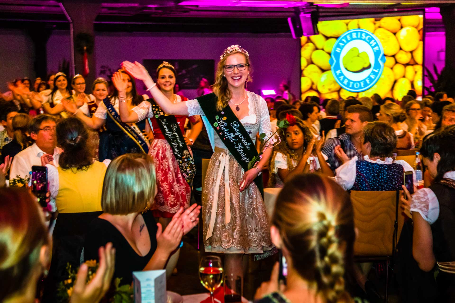 Die Erzeugergemeinschaft (EG) Qualitätskartoffeln Neuburg-Schrobenhausen hat zum 42. Mal eine Kartoffelkönigin gekürt. Stephanie Brüderle, Studentin des Agrarmanagements, wird ab sofort für ein Jahr ehrenamtlich als Botschafterin für die Knolle unterwegs sein. Mit Spannung erwarteten die rund 400 geladenen Gäste in der Alten Schweißerei in Schrobenhausen den Namen der neuen Regentin. Dieses Geheimnis wurde im Vorfeld streng gehütet und erst nach dem raffinierten Fünf-Gänge-Kartoffel-Menü gelüftet. Die neue Königin wurde wie jedes Jahr in einem individuellen Auswahlverfahren durch eine Delegation der bayerischen Kartoffelbauern gefunden. Bevor sich die neue Bayerische Kartoffelkönigin dem Publikum vorstellte, übergab ihr ihre Vorgängerin Ramona Glöckl Krone und Zepter in einer feierlichen Zeremonie.