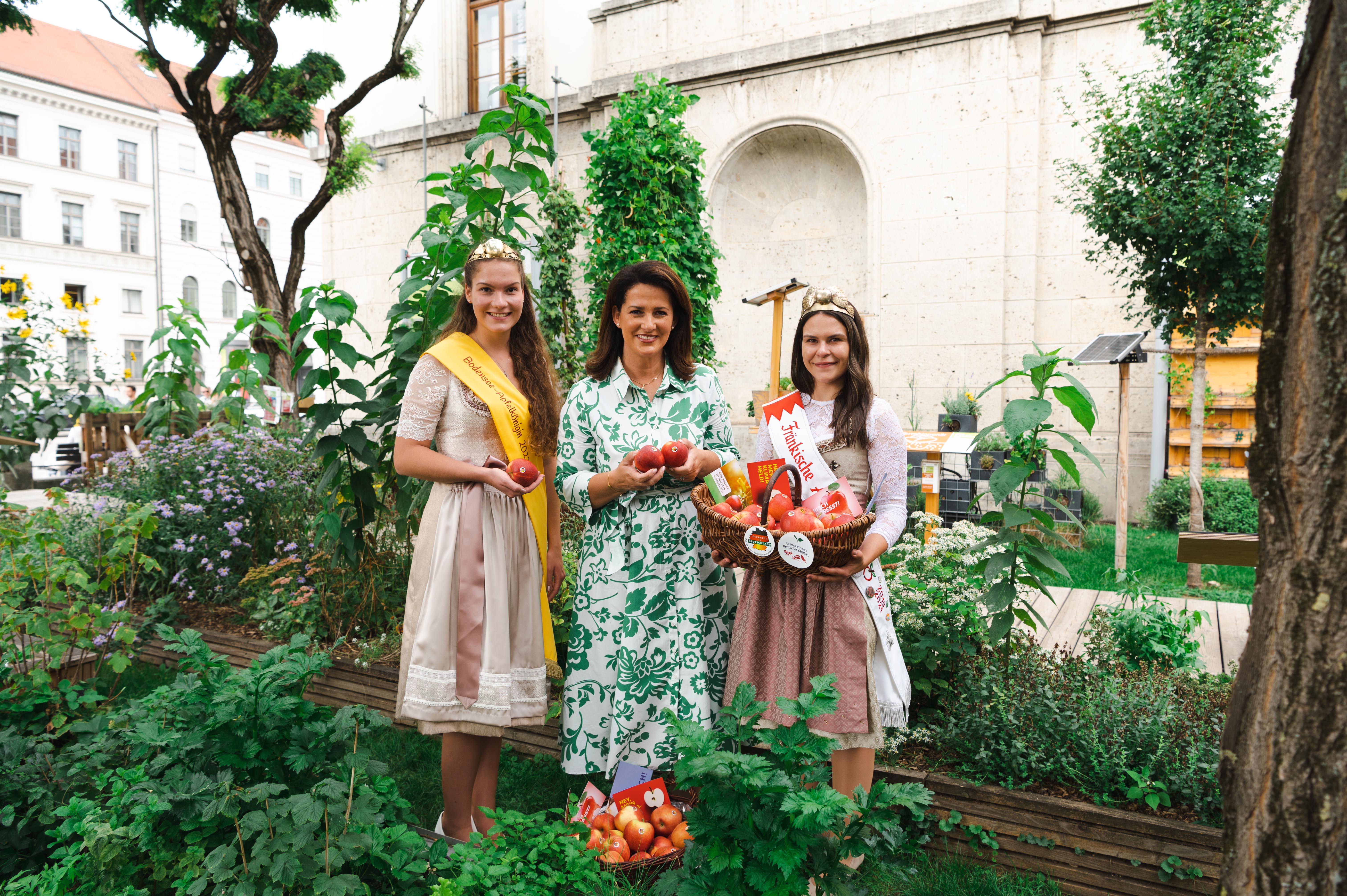 Die Schirmherrschaft der Aktion übernimmt die bayerische Landwirtschaftsministerin Michaela Kaniber. Von den beiden Apfelköniginnen bekam die Ministerin zum Auftakt schmackhafte Äpfel überreicht.