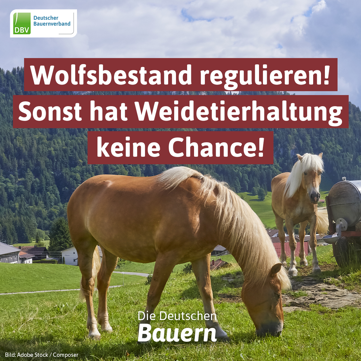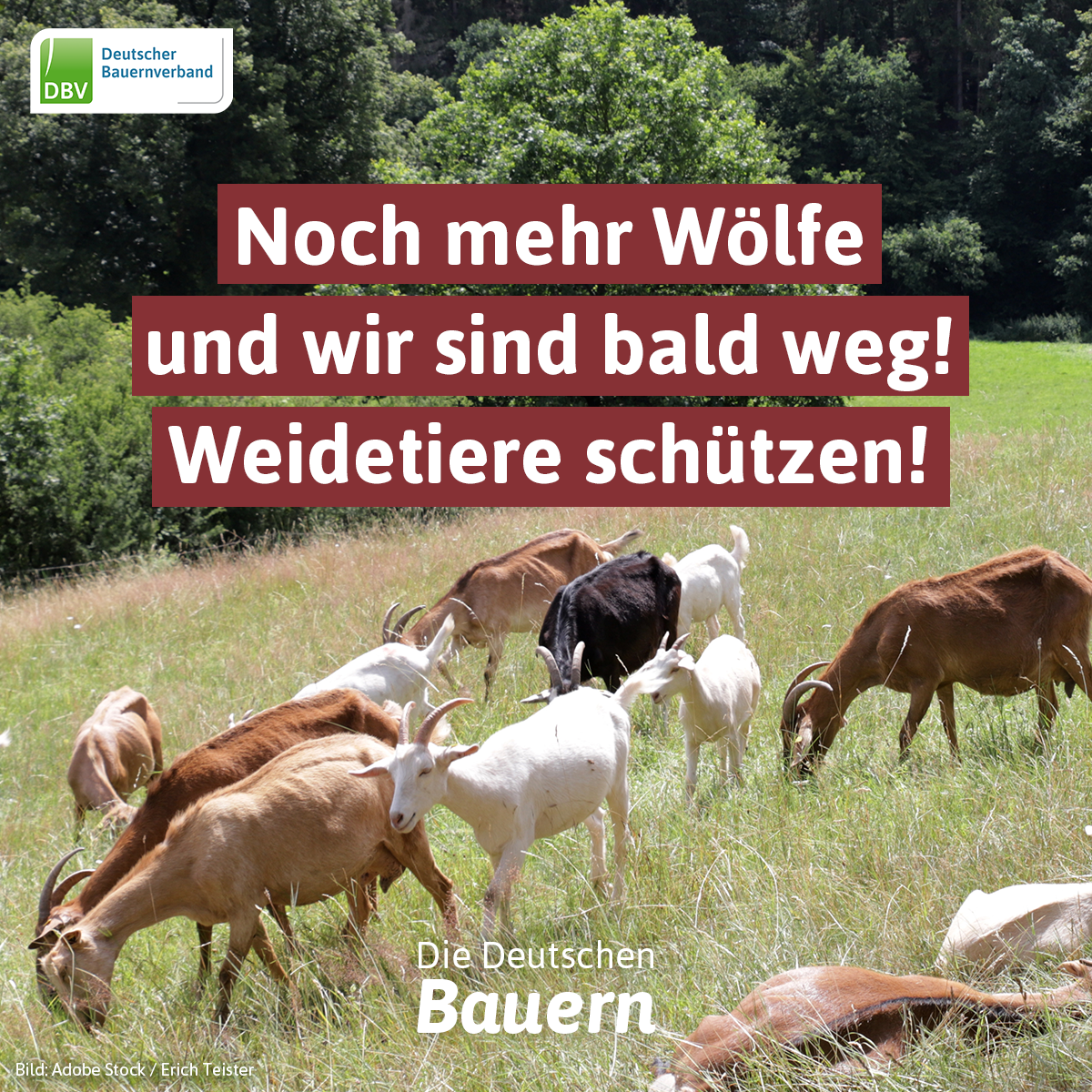 „Die Halter von Schafen, Ziegen, Pferden, Rindern und landwirtschaftlichen Wildtieren auf der Weide akzeptieren es nicht länger, von Umweltpolitikern und -verbänden hingehalten und vertröstet zu werden. Ein Bestandsmanagement ist längst überfällig, ein weiteres Hinauszögern wird zu nicht umkehrbaren Strukturbrüchen in der Weidetierhaltung führen. Wer die biologische Vielfalt im ländlichen Raum fördern, die Nutzung von Grünland sichern und die Kulturlandschaft auch in Zukunft pflegen will, muss den Abschuss auffälliger Wölfe schnell und unbürokratisch genehmigen und den Gesamtbestand des Wolfes regulieren. Die Bundesregierung ist jetzt gefordert, den im Koalitionsvertrag vorgesehenen Einstieg in ein regional differenziertes Bestandsmanagement auf den Weg zu bringen“, fordert der Generalsekretär des Deutschen Bauernverbandes, Bernhard Krüsken.