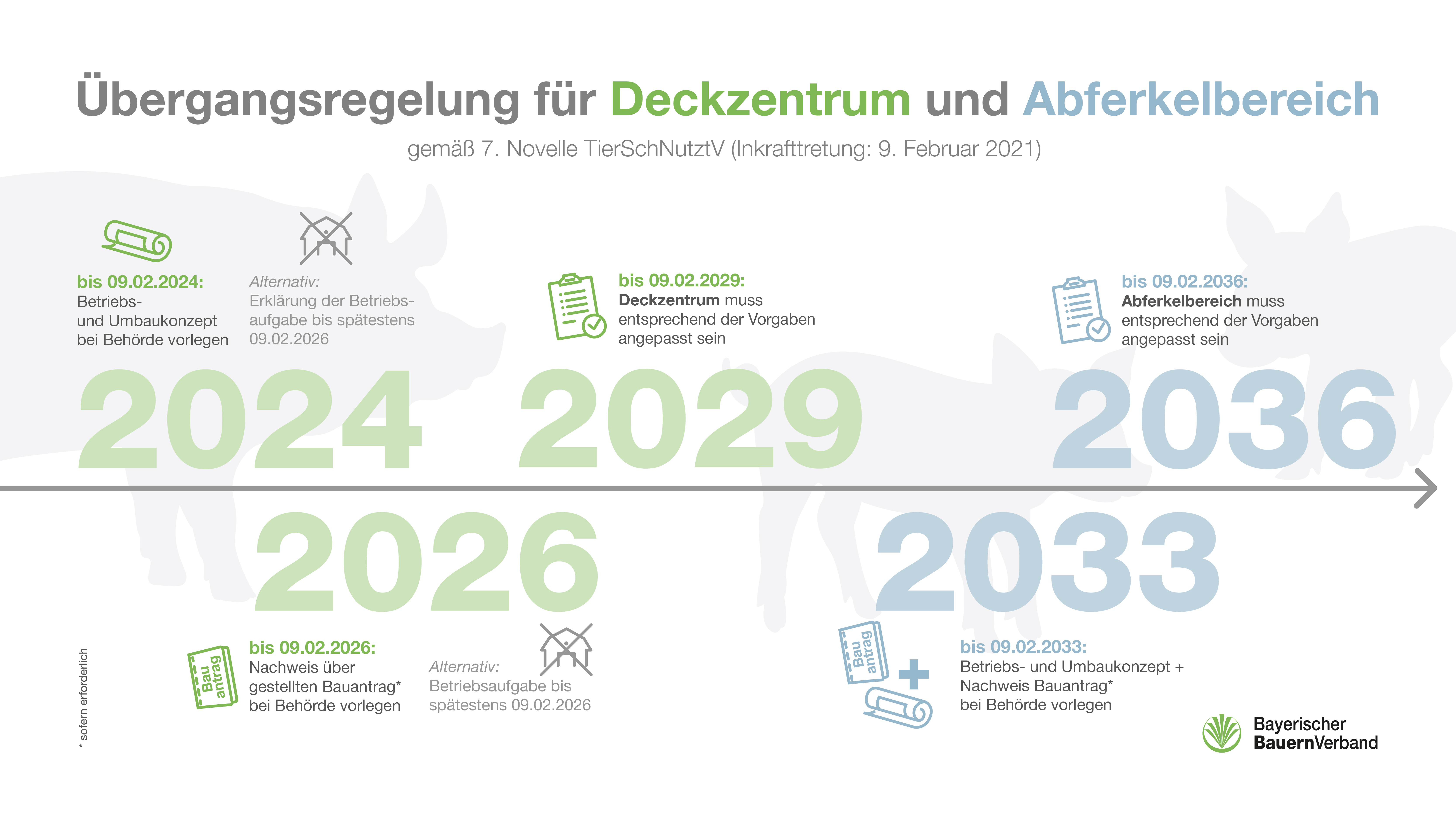 Ein Umbaukonzept für das Deckzentrum bis 09.02.2024 - vor dieser Herausforderung stehen alle Sauenhalter, deren Deckbereich die künftige Anforderung von 5 qm pro Sau noch nicht erfüllt. Dass die Sauenhalter aktuell vor dieser einschneidenden Entscheidung stehen, geht auf die Änderung der Tierschutz-Nutztierhaltungsverordnung im Juni 2020 zurück, gegen die sich der BBV nachdrücklich gewehrt und das Resultat kommentiert hatte: https://www.bayerischerbauernverband.de/presse/sehr-hoher-preis-fuer-rechtssicherheit-der-sauenhaltung-14112.